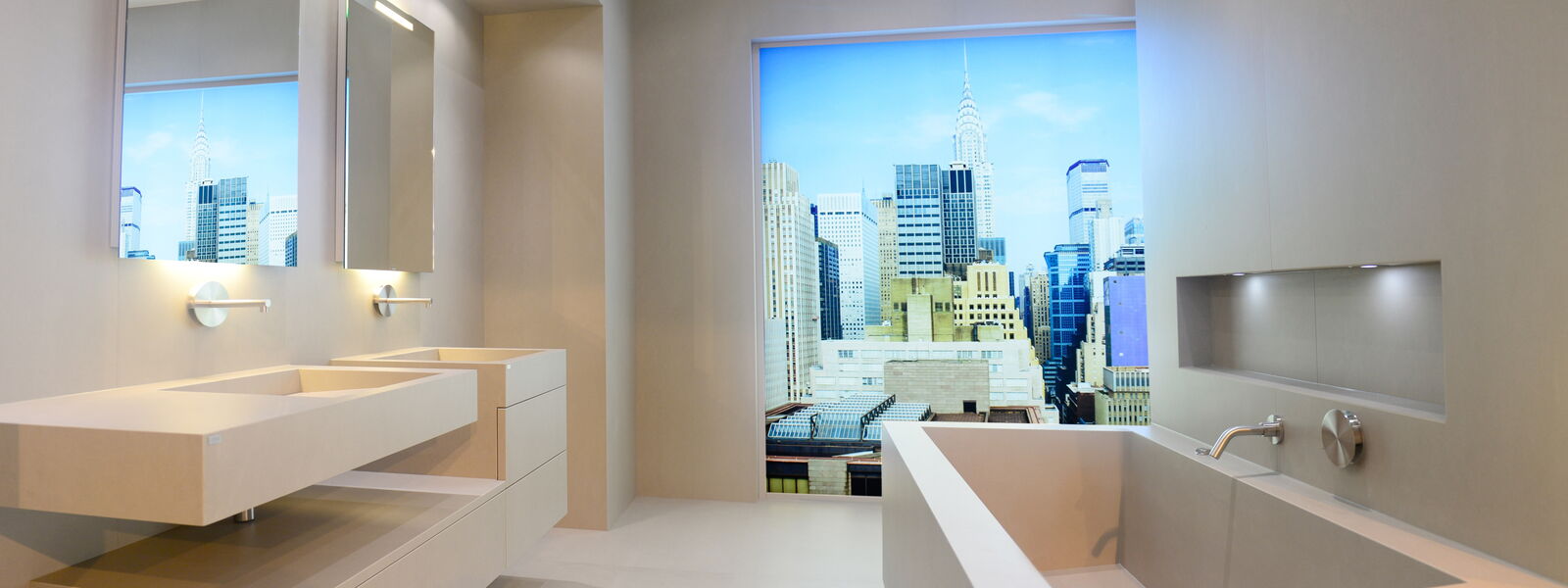 Es erwarten Sie die neuesten Designtrends, die wir Ihnen in unzähligen Musterbädern und Schauschränken präsentieren.